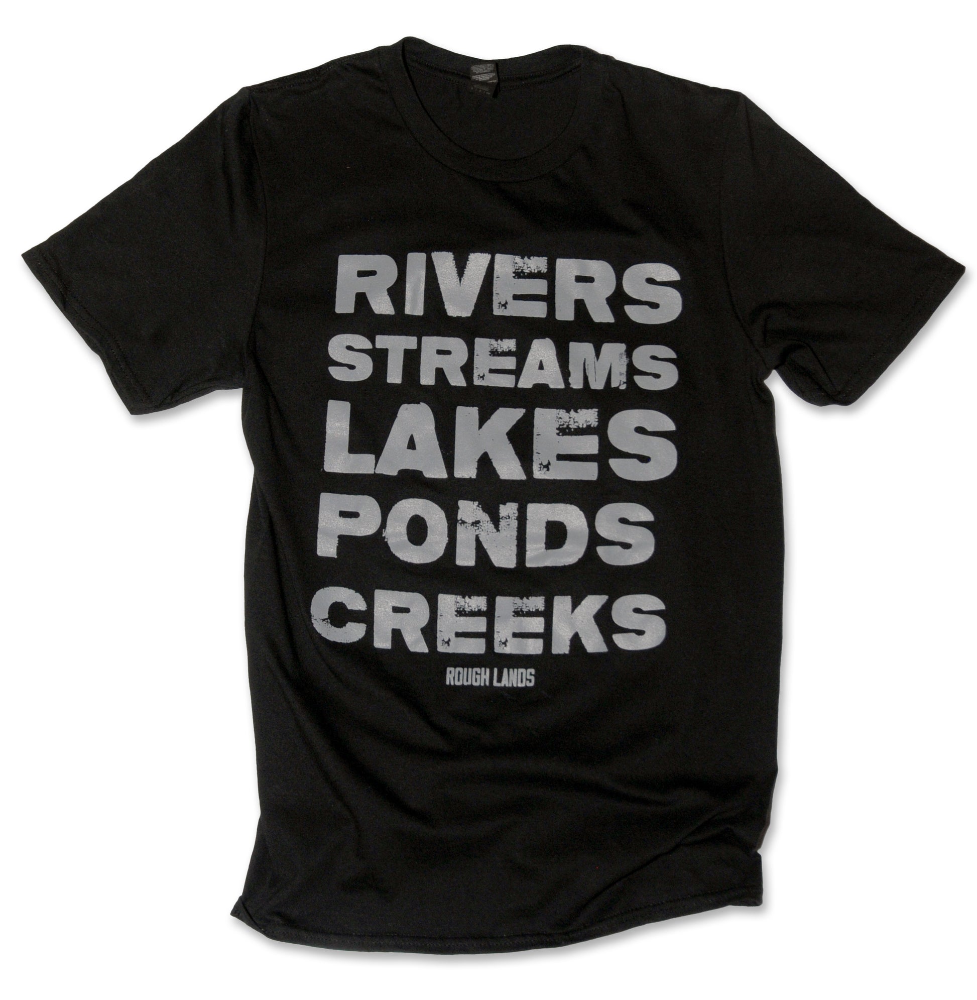 The Rough Lands Outdoors RIVERS STREAMS LAKES PONDS CREEKS Tshirt.